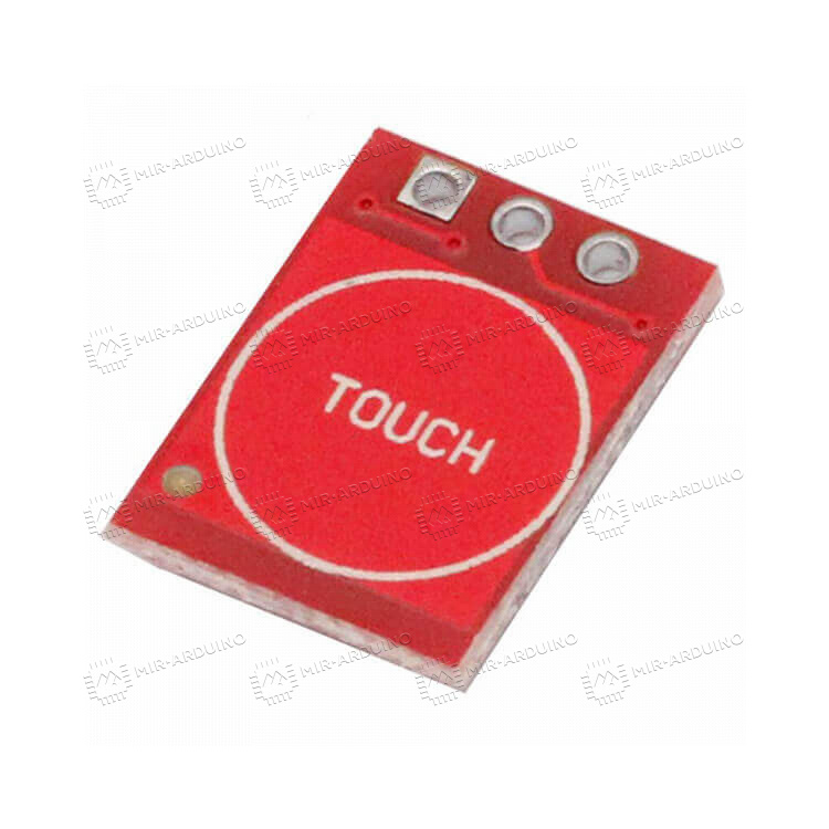 Датчик касания TTP223 выполнен в виде сенсорной кнопки на базе контроллера TTP223-BA6. Является бюджетной альтернативой тактовой кнопке. Может работать в режиме фиксации, активируется при прикосновении. Модуль представляет собой плату, которая может подключаться к Ардуино. Пользователь может отрегулировать чувствительность кнопки путем увеличения контактной площадки датчика, уменьшения толщины стенок корпуса, где расположен сенсор, а также с помощью конденсатора меньшей емкости. Предусмотрено три выхода – напряжение питания, земля и выход на микроконтроллер.