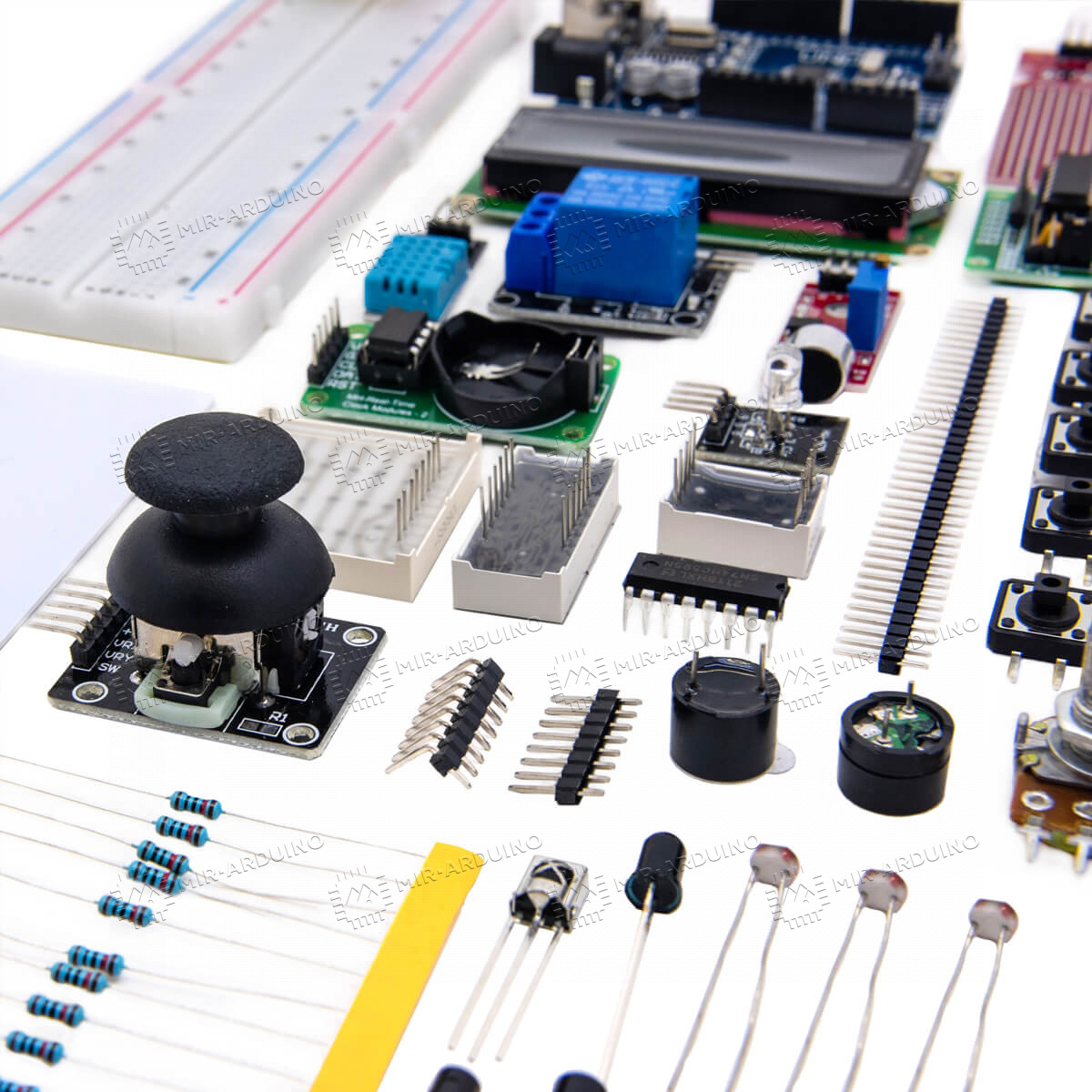 Покупал для проекта ребенка в лицее. Комплектация ну очень богатая. Тут тебе и датчики, и светодиоды, и перемычки всякие. Играйся не хочу. Засели с сыном за это дело часа на три, даже собрали нехитрую схемку. Очень увлекательно.